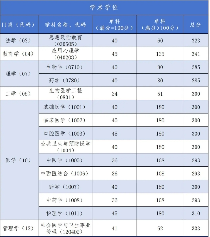 首都医科大学2025年硕士研究生招生复试基本分数线