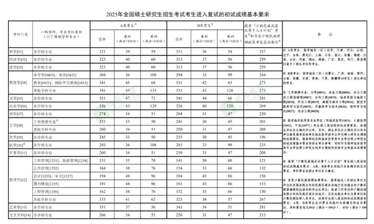 2月24日,教育部发布《2025年全国硕士研究生招生考试考生进入复试的初试成绩基本要求》(国家分数线)。各招生单位根据《2025年全国硕士研究生招生工作管理规定》,在国家分数线的基础上,自主确定并公布报考本单位的考生进入复试的初试成绩要求及其他学术要求。