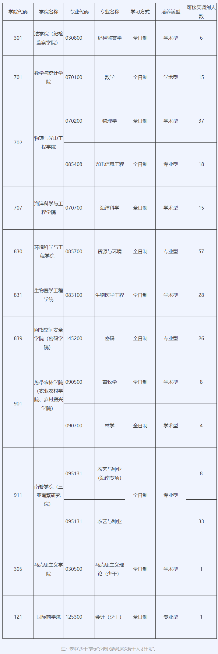根据教育部、海南省以及《海南大学2025年硕士研究生招生复试录取工作方案》等相关文件精神,结合我校一志愿复试情况,现将我校2025年硕士研究生招生调剂工作安排予以公布。