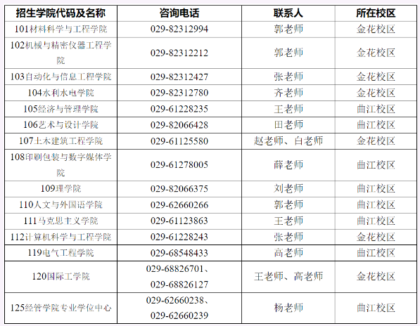 1. 研究生招生办公室:联系电话029-82312406、82312416。
