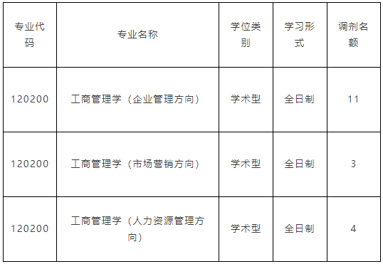 5.第一志愿报考工商管理、公共管理、旅游管理、工程管理、会计、图书情报、审计专业学位硕士的考生,在符合调入专业报考条件的前提下,可申请调剂至 MBA 专业;