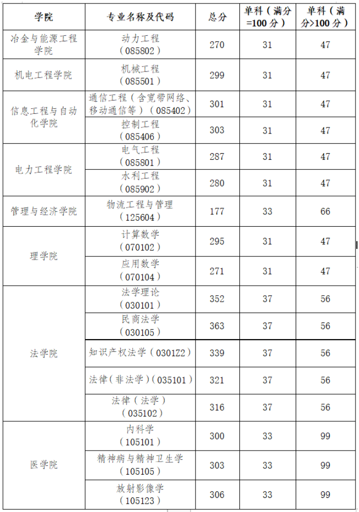 (3)管理类联考专业学位:总分152分,单科(满分100分)30分,单科(满分200分)60分。