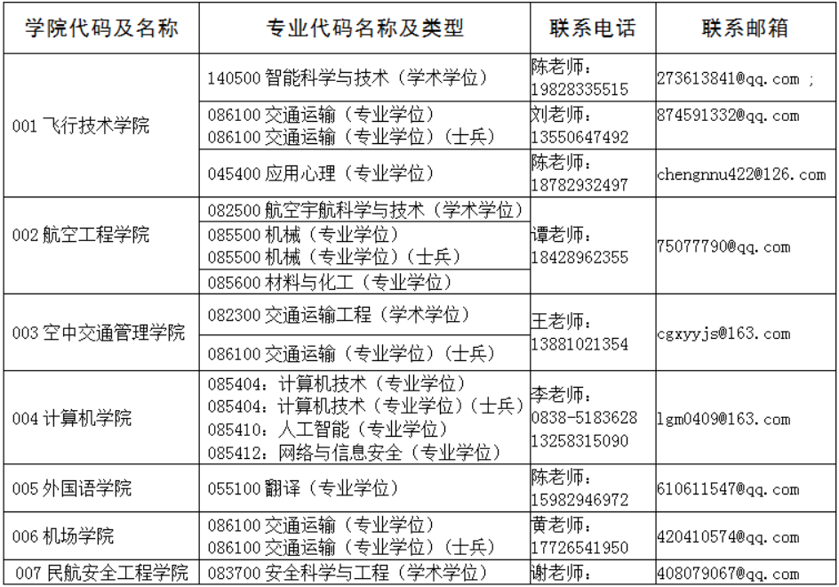 (特别提醒:如考生有“色盲”、“色弱”等身体情况,今后欲从事民航相关职业将受限制,请考生根据自身身体情况和发展需求谨慎选择调剂专业!)