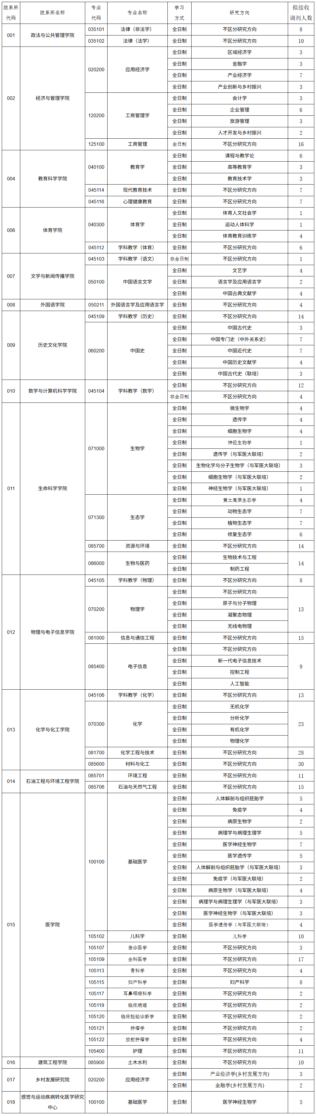 为方便考生清晰了解调剂信息,我校将接收调剂的专业(研究方向)、学习方式及拟接收人数整理如下,具体详情可参考附件内容: