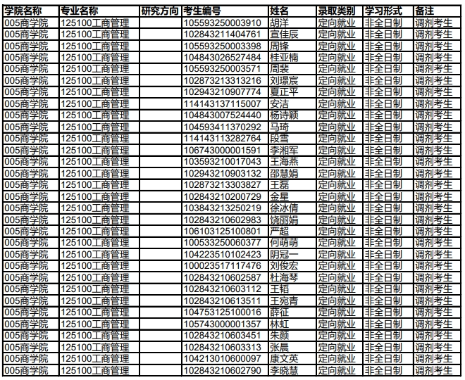 关于公示南京师范大学工商管理硕士(MBA)研究生拟录取名单(调剂)的通知