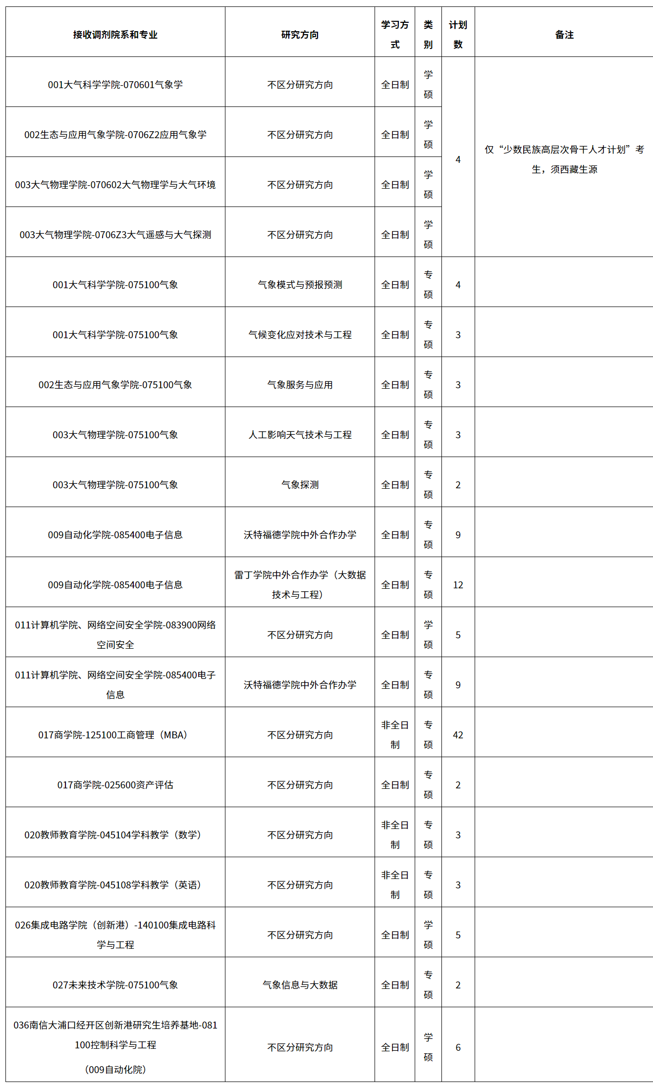 南京信息工程大学2025年硕士研究生招生考试调剂信息公告