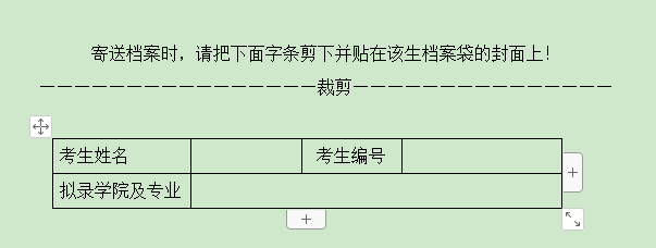 此外,在提交档案时,需将调档函下方的 “回执联” 填写完整(注明拟录取考生个人姓名及拟录取学院信息),并粘贴在个人档案背面,便于学校接收档案后精准核对;同时,请将以下字条裁剪下来,粘贴在档案袋封面上,确保档案流转准确: