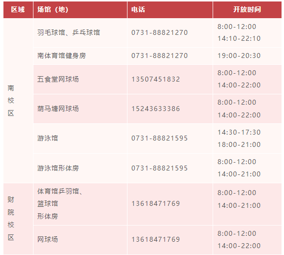 场地开放如有调整,另行通知。特殊情况需使用场地请向体育场馆管理中心(南校区体育馆一楼,联系电话88821270)申请。