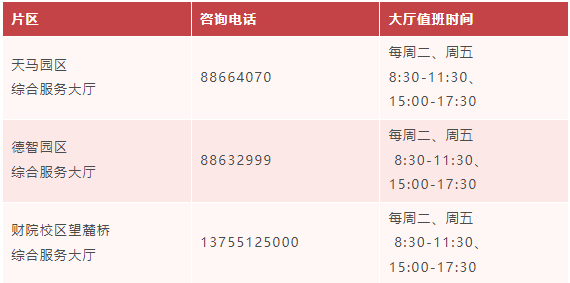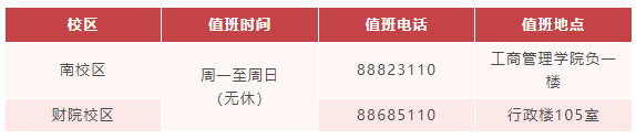 2.后勤保障部值班电话:88821278 (每周一至周五8:30-11:30;15:00-17:30)