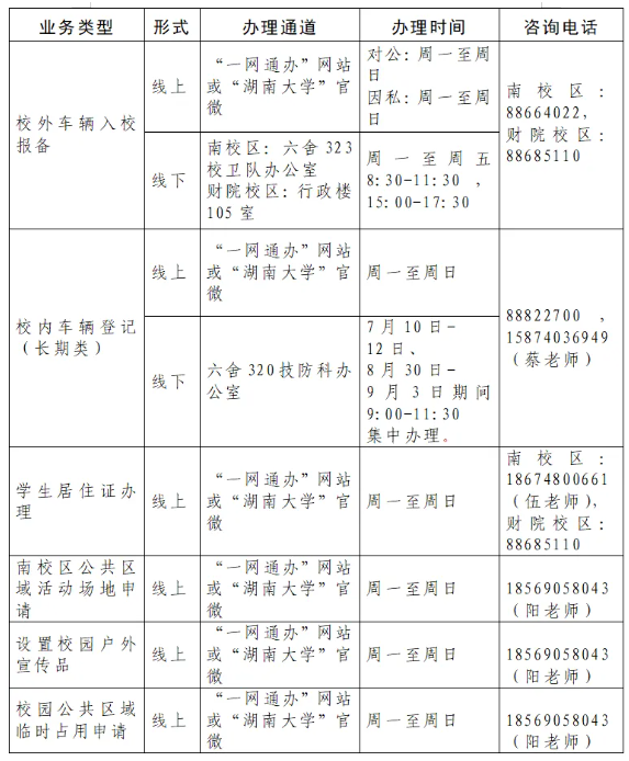 2.应急处理可通过湖南大学一网通办日常生活报修系统报修或线下在事务大厅与楼栋值班室报修。