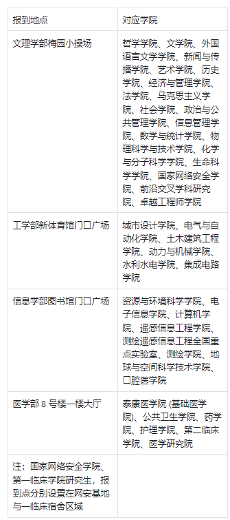 研究生新生报到地点在本科新生基础上增加医学部站点,具体分配如下: