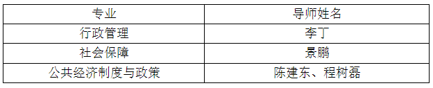 4.直博生:行政管理、社会保障、公共经济制度与政策专业分别接收不超过1名直博生。直博生可选导师名单如下: