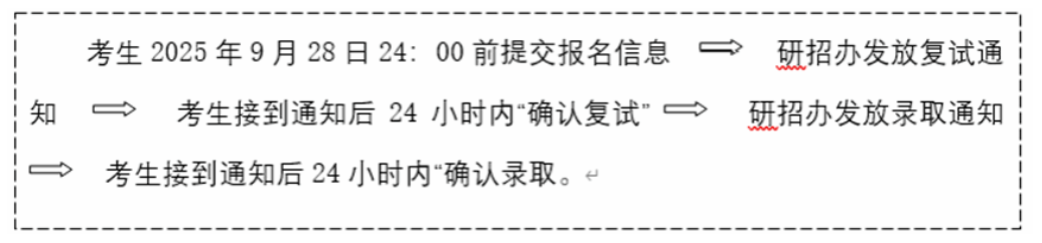 5.获得拟录取资格的申请人务必于2025年9月28日24:00前(预计时间,具体时间另行通知)登陆教育部“全国推免生服务系统”填写提交报名信息,并按照如下程序完成录取确认,逾期未确认将视为自动放弃录取资格。