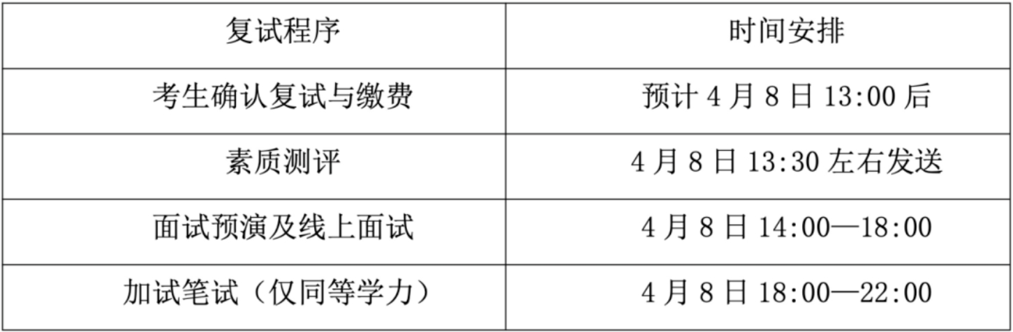 考生应在复试前参加素质测评,未按要求完成素质测评的考生,不予录取。需用电脑(配摄像头)上网进行测评,测评前会向考研报名时提供的邮箱或注册手机号发送测评链接,测评预计20-30分钟可以做完。测评链接发送时间为:预计4月8日13:30左右。