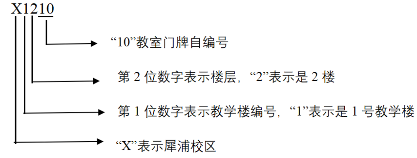 我校犀浦校区教室号用4位数字标示,本考点考场所用教室示例如下: