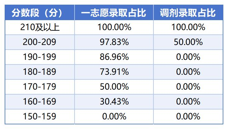 4. 调剂门槛高到“离谱”!只有210分以上(100%)和200-209分(50%)的同学有调剂机会,190分以下想都别想。而且总共就2个调剂名额,低分段同学千万别把希望放调剂上~