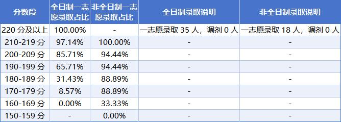 2. 全日制vs非全日制:门槛差不少!:全日制是典型的“分数越高越稳”,220分以上闭眼录,210-219分也有97%的概率;但180分以下就悬了,170多分只有8%的录取率,160多分直接没戏。非全日制就友好多了,170分以上录取率近9成,210分以上更是100%;就算160多分,也有33%的机会,只有150多分才没希望,包容度拉满!
