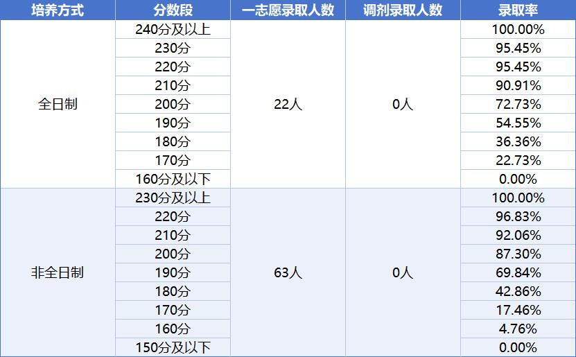 4. 全日制比非全日制竞争略大!同分数下,全日制录取率通常更低——比如190分,全日制54.55% vs 非全日制69.84%;180分,全日制36.36% vs 非全日制42.86%。毕竟全日制资源更集中,报考的人也更拼,所以全日制考生得把目标定得更高点,非全日制也别只满足过线,多考几分更稳!